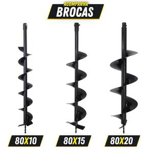 Perfurador de Solo Lynus Á Gasolina PSL517 51,7cc 1,8HP Com Broca 80x20cm + Broca 80x15cm + Broca 80x10cm + Óleo TOYAMA LUB FG50 500ml 2T