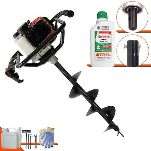 Perfurador De Solo Vant VPS52 Á Gasolina 2T 52cc 2HP Com Broca 80x20cm + ÓLEO CASTROL STIHL 500ml