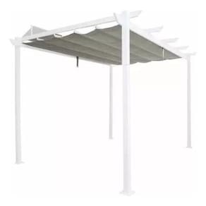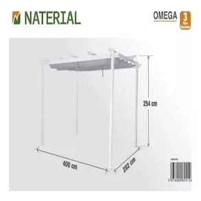 Características do Pergolado Aluminio Omega Cinza e Branco 2,54 x 4 m Naterial Ele conta com estrutura em aço e tem cores cinza e branco. Quanto às dimensões, este pergolado possui 2,5 m de altura, 4 m de largura e 4 m de comprimento. Seu toldo é retangular, de espessura grossa e tem medida de 2,85 x 4 metros.