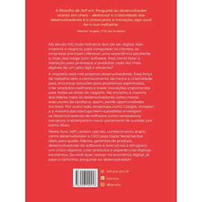 No século XXI, toda indústria tem de ser digital. Não importa o negócio: para conquistar os clientes, as empresas precisam oferecer uma experiência excelente e, hoje, isso exige bom software. Mas como fazer a transição para processos e produtos cada vez mais digitais de um jeito ágil e eficiente? A resposta está nos próprios desenvolvedores. Essa força de trabalho tem o conhecimento técnico e a criatividade para encontrar soluções para problemas espinhosos, criar produtos melhores e trazer inovações importantes para todas as áreas do negócio. No entanto, a maioria dos líderes trata os desenvolvedores como meros executores de tarefas e, assim, perde oportunidades incríveis. Por outro lado, empresas como Google, Amazon e a maioria das startups bem-sucedidas enxergam os desenvolvedores de software como verdadeiros parceiros, e alcançaram novos patamares de sucesso por conta disso. Neste livro, Jeff Lawson usa seu conhecimento duplo como desenvolvedor e CEO para trazer ferramentas úteis para ajudar líderes, gerentes de produto, desenvolvedores de software e executivos a atingirem um único objetivo: criar produtos e experiências digitais excelentes. Se você quer vencer na economia digital, já sabe o caminho: pergunte ao desenvolvedor!