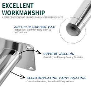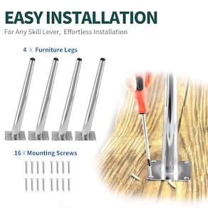Seimneire 4 peças pernas de móveis de 30 cm, pernas de metal cônicas oblíquas cromadas estilo meados do século pés para sofá armário mesa cadeira armário sofá otomano casa projetos DIY Especificação: Tipo: Oblíquo Material: Ferro Cor: Cromado Capacidade de peso: aprox. 135 kg por perna Altura: 12 polegadas / 30 cm (incluindo a parte inferior de borracha) Tamanho da base: 3,15 x 3,15 polegadas / 8 x 8 cm (C x L) Espessura da base: 2,5 mm Tamanho do parafuso: 0,95" x 0,18" / 24 x 4,6 mm Conteúdo da embalagem: 4 x pernas de móveis. 16 parafusos de montagem. Avisos importantes: 1. As cores podem ter diferenças devido à diferença entre monitores, por favor entenda 2. Considere uma diferença de 1 a 2 mm devido à medição manual, e certifique-se de que não se importa com isso antes de licitar - *Investimento que vale a pena --- 4 x pernas cônicas oblíquas para móveis, 16 x parafusos de montagem. O tamanho total é 3,15" x 3,15" x 12" / 8 x 8 x 30 cm. As pernas de móveis de estilo meados do século dão um novo visual à sua casa no dia a dia. Além disso, pode adicionar moda aos seus vários projetos de móveis DIY, respeitando seu orçamento. - *Seleção de alta qualidade --- Feito de ferro de alta dureza com durabilidade e forte capacidade de carga. A capacidade de peso é de 139 kg por perna (aproximadamente). Não há necessidade de se preocupar com a quebra devido ao peso pesado. Se você deseja uma atualização ou elevação em peças de móveis, essas pernas são uma opção perfeita. - *Excelente acabamento --- A superfície delicada foi tratada com tinta galvanizada para que seja resistente à abrasão e à corrosão sem ferrugem, ótima para projetos de móveis fixos de longo prazo. Na parte inferior da perna, há uma almofada de borracha que pode proteger o chão de ser utilizado pelos móveis. - *Projetado para versatilidade --- Os pés de móveis cromados podem ser compatíveis com muitos móveis de design moderno ou de meados do século. Além disso, as pernas de metal vêm com furos e parafusos pré-perfurados para que a instalação seja rápida e indolor para todos os níveis de habilidade. Não apenas perfeito para o sofá, mas também para o armário, mesa, sofá, cadeiras, assentos de amor, cama, mesa, pufes, armários, cômoda, estante e outros móveis DIY. - *Fácil de instalar --- As pernas dos móveis estão equipadas com parafusos suficientes. Você pode reservar os orifícios de instalação nos móveis que deseja instalar. Os orifícios dos parafusos das pernas de metal podem ser alinhados com a posição de instalação e aparafusados nos parafusos para apertá-los.