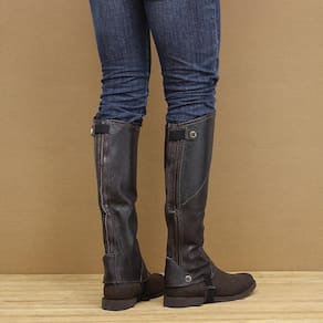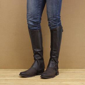 Perneira Bronc-Steel modelo Champiom fabricada em couro na cor Marrom, possui fechamento por zíper reforçado, costuras reforçadas, duas presilhas de pressão para maior firmeza e elástico na parte inferior com reforço em couro que passa pelo solado do calçado.