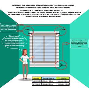 Exemplo: Janela: 100cm (L) x 100cm (A) = Persiana: 120cm (L) x 220cm (A).