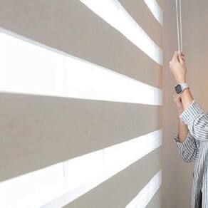 A persiana double vision une a sofisticação de uma cortina de tecido com toda a funcionalidade que uma persiana oferece.