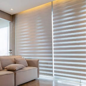 A persiana double vision une a sofisticação de uma cortina de tecido com toda a funcionalidade que uma persiana oferece.