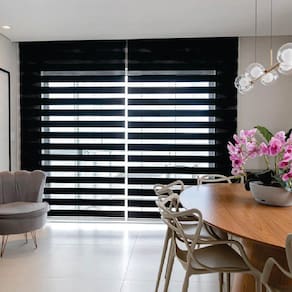 A persiana double vision une a sofisticação de uma cortina de tecido com toda a funcionalidade que uma persiana oferece.