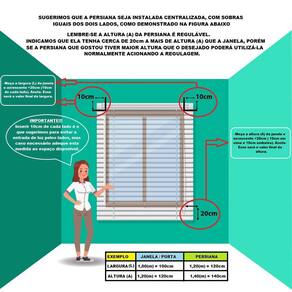 Exemplo: Janela: 120cm (L) x 100cm (A) = Persiana: 140cm (L) x 130cm (A).
