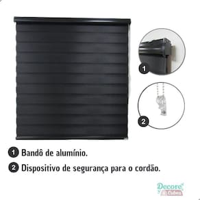 Com tecido duplo que intercala camadas translúcidas e opacas, a persiana permite que você controle a passagem ou bloqueio de luz no ambiente, proporcionando privacidade e conforto. Além disso, seu acabamento total black, tanto no tecido quanto no bandô, confere um visual moderno e sofisticado ao ambiente.