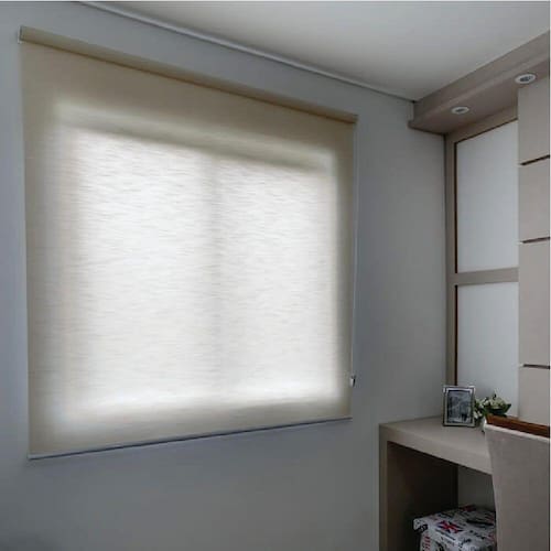 A persiana rolo translúcida é uma solução para quem busca privacidade e ambiente claro, pois seu tecido permite a entrada de luz difusa, ainda assim bloqueando a visão exterior.