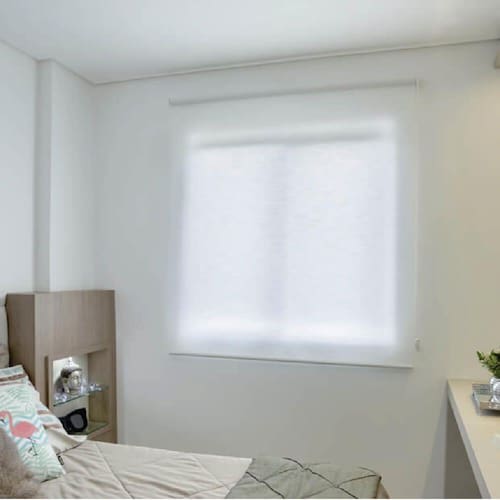 A persiana rolo translúcida é uma solução para quem busca privacidade e ambiente claro, pois seu tecido permite a entrada de luz difusa, ainda assim bloqueando a visão exterior.