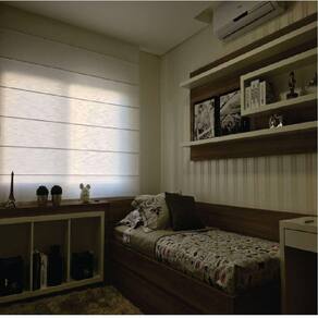 A persiana romana é formada por gomos largos e horizontais que dobram a medida que a persiana abre e fecha. O seu tecido translucido é uma solução para quem busca privacidade e ambiente claro, pois seu tecido permite a entrada de luz difusa, ainda assim bloqueando a visão exterior.