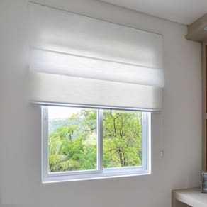 A persiana romana é formada por gomos largos e horizontais que dobram a medida que a persiana abre e fecha. O seu tecido translucido é uma solução para quem busca privacidade e ambiente claro, pois seu tecido permite a entrada de luz difusa, ainda assim bloqueando a visão exterior.