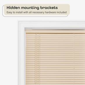- Persianas de vinil sem fio para escurecimento de ambientes: reduza o calor e ajude a economizar na conta de eletricidade enquanto filtra a luz com as mini persianas Achim Home Decor CO GII Deluxe Sundown Cordless Room Darkening Mini Blinds. Projetadas para privacidade, estas persianas de PVC sem cabos para se emaranharem são seguras para crianças e animais de estimação. As persianas caberão em janelas de 0,95 cm menores e 1,27 cm mais largas do que o tamanho indicado. A persiana real é 1,27 cm mais estreita do que o tamanho indicado. O tamanho real da ripa é de 2,54 cm.