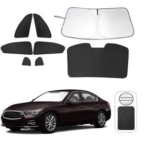 Para-sol de janela para janela lateral do carro capas de janela de acampamento pára-brisa viseira para-sol protetor solar lateral protetor solar para-brisa de carro capa de janela preta viseiras dobráveis para-brisa tela frontal traseira para-sol - Design personalizado: o para-sol serve para Q50 2014-2024 para Infiniti. Nossa persiana de janela está de acordo com o design do tamanho do carro, ajusta-se perfeitamente ao seu carro e não precisa aparar. O para-sol do para-brisa resolve o problema de vazamento de luz e incompatibilidade dos guarda-chuvas antigos. O para-sol projetado para Infiniti Q50. - Proteção da luz solar e mantém o fresco: camada dupla de materiais de proteção térmica para reduzir o acúmulo de calor em até 4,4 °C e bloqueia mais de 99% dos raios UV prejudiciais, luz solar. A viseira solar mantém o assento traseiro fresco do seu veículo, refresca toda a temperatura interna do carro e reduz o envelhecimento interno causado pela luz solar direta. - Proteja a privacidade: este kit de para-sol de janela de 8 peças oferece cobertura total para o seu carro, fornece um ambiente de espaço de privacidade amigável, e estas capas opacas de janela de carro são perfeitas para acampar, cochilar e relaxar. - Material resistente: o pára-brisa é feito de tecido reflexivo com material reflexivo UV, isolamento térmico de camada dupla e 99% FPS para melhor dissipação de calor. A estrutura de metal é muito forte e o forro é apertado, o que ajuda a evitar flacidez enquanto é menos propenso a rugas. Design para proteger assentos de carro, peças eletrônicas, painel, volante e outros instrumentos para permanecer fresco, totalmente sombreado e não precisa se preocupar com a alta temperatura no verão. - Fácil de instalar e armazenar: design de modelo de alta precisão, se encaixa exatamente nas bordas e basta colocá-lo na janela do para-brisa do seu carro. Facilmente abre e instala em segundos, seguro e conveniente de usar. Fácil de quebrar e dobrar na bolsa de armazenamento. Dobra-se até 1/10 do tamanho autêntico para armazenamento compacto e vem com uma bolsa e bolsa de armazenamento multifuncional que você pode facilmente colocar o guarda-sol no bolso da porta ou use o multifuncional bolsa de armazenamento como capa solar de volante.