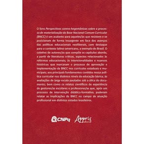 O livro Perspectivas contra-hegemônicas sobre o processo de materialização da Base Nacional Comum Curricular (BNCC) é um acalanto para aqueles/as que resistem e se posicionam de forma insurgente em face dos avanços das políticas educacionais neoliberais, com destaque para o contexto latino-americano, a exemplo do Brasil. O coletivo de autores/as que compõe os capítulos aborda, a partir de literaturas críticas, aspectos relacionados às reformas educacionais; às intencionalidades e nuances históricas que marcaram o processo de aprovação e implementação da BNCC nos currículos estaduais e municipais; aos principais fundamentos contidos nessa política curricular nos distintos níveis da educação básica; às avaliações de larga escala pautadas sob a ótica do documento; bem como os relatos científicos de experiência de gestores/as escolares e professores/as que, após um processo de intervenção didático-formativa, puderam relatar as implicações da BNCC no campo de atuação profissional em distintos estados brasileiros.