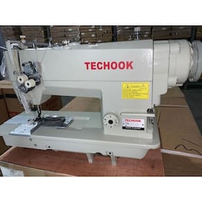 Máquina de costura pespontadeira 2 agulhas barra fixa com bitola de 1/4 e motor Direct Drive. Possui lançadeira grande e transporte duplo (dente + agulha). Motor Direct Drive economiza até 70% de energia, sem barulho e correia, com maior sincronismo na partida.Funções
