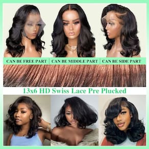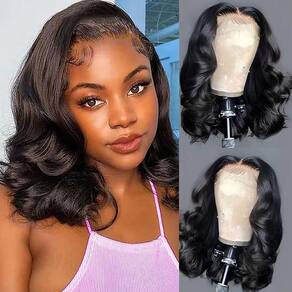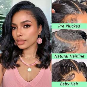 - Peruca frontal de renda 33 x 15 cm, tamanho da renda: nossa peruca Bob ondulada de corpo de 33 x 15 cm é de renda transparente HD suíça, não fina e invisível, pode derreter sua pele perfeitamente. Tamanho de renda grande pode fazer parte do meio, parte lateral, e pode fazer rabo de cavalo alto e coque, estilizado como você gosta.