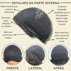 - Fibra orgânica premium; - 30cm de comprimento; - Aceita chapinha até 180ºC; - Peso 185g em média; - Possui três pentes internos para maior fixação; - Tamanho da peruca M (padrão) com alças internas ajustáveis;- Touca interna fechada (Os fios não embaraçam para dentro). Marca: Não Informado