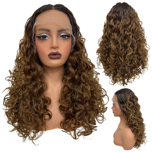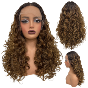 Peruca cacheada front lace 55cm ondulada RH4/33/22 loira omb - Peruca cacheada front lace loira ombré