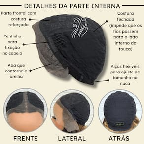 - Tamanho da peruca M (padrão) com alças internas ajustáveis;- Touca interna fechada (Os fios não embaraçam para dentro).