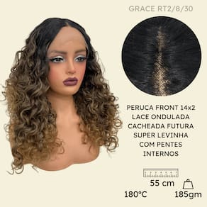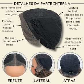- Fibra futura; - 55cm de comprimento; - Aceita chapinha até 180ºC; - Peso 185g em média; - Possui três pentes internos para maior fixação; - Tamanho da peruca M (padrão) com alças internas ajustáveis;- Touca interna fechada (Os fios não embaraçam para dentro). Marca: Não Informado