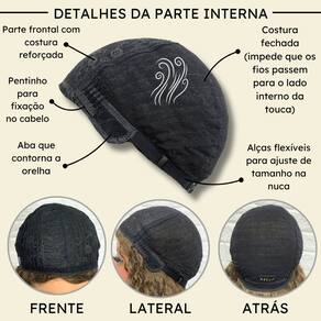 - Fibra orgânica premium; - 55cm de comprimento; - Aceita chapinha até 180ºC; - Peso 250g em média; - Possui três pentes internos para maior fixação; - Tamanho da peruca M (padrão) com alças internas ajustáveis;- Touca interna fechada (Os fios não embaraçam para dentro). Marca: Não Informado