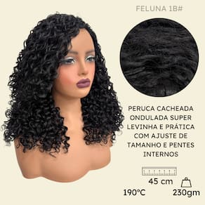 - Fibra orgânica premium; - 45cm de comprimento; - Aceita chapinha até 190ºC; - Peso 230g em média; - Possui três pentes internos para maior fixação; - Tamanho da peruca M (padrão) com alças internas ajustáveis;- Touca interna fechada (Os fios não embaraçam para dentro). Marca: Não Informado