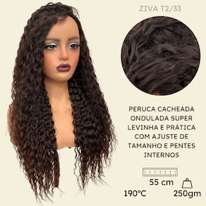 Peruca cacheada ondulada castanho 55cm organica T2/33 - Peruca cacheada de fibra orgânica