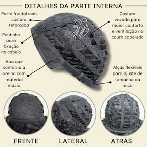 1 - Fibra de alta qualidade tipo kanekalon; 2 - Densidade em 180% (Quantidade normal de cabelo); 3 - 45cm de comprimento; 4 - Wig Tradicional; 5 - Aceita chapinha até 180º ; 6 - Alças internas para regulagem; 7 - Possui um pente interno para maior fixação. 8 - Tamanho da peruca M (Adapta-se bem a maioria dos tamanhos de cabeça). Marca: LIONSWIG Ean: 835944999017