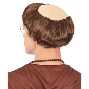 peruca Franciscano, Padre, com cabelos laterais e careca em cima. Ideal para festas à fantasias, teatro...
