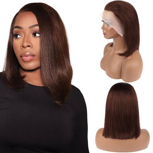 - Peruca de cabelo humano liso 33 x 10 cm, frente bob, cabelo humano, feito 100% peruca de cabelo humano, corte de doador jovem, densidade 180, cabelo humano, padrão macio de crimpagem em baixa manutenção, pode ser tingido, reestilizado, descolorido