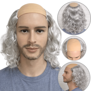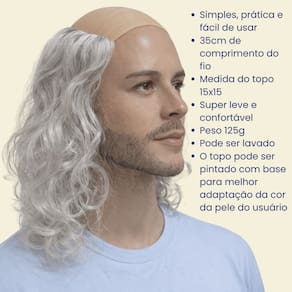 Peruca com careca do vovô idoso cacheada grisalho cinza 35cm