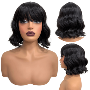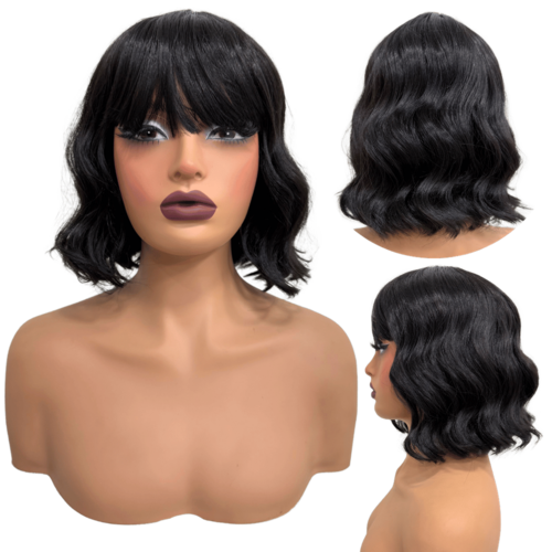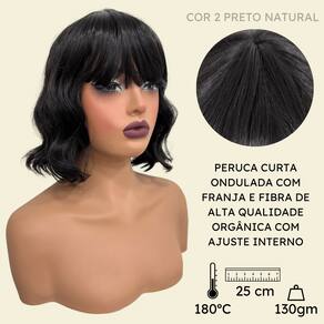 Peruca curta c/ franja ondulada ombre orgânica premium 25cm - Cor: Preto natural 2
