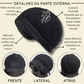 - Tamanho da peruca M (padrão) com alças internas ajustáveis;