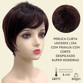- Fibra orgânica; - 6cm de comprimento; - Aceita chapinha até 160º; - Peso do produto 60gm em média; - Tamanho da peruca M (padrão) com alças internas ajustáveis.