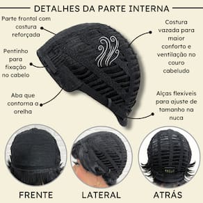 - Fibra orgânica premium; - 10cm de comprimento; - Aceita chapinha até 200ºC; - Possui três pentes internos para maior fixação; - Peso do produto 92gm em média; - Tamanho único com alças internas ajustáveis; - Raiz crespa no topo para um penteado mais firme jogado para trás. Informações importantes