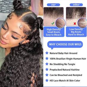 - ?Perucas HD Lace Front Human Hair?: Peruca de cabelo humano ondulado de água com densidade de 180%, completa e grossa, fiel ao comprimento e peso, aparência incrível natural pode ser tingida e descolorida a seu favor, estilizada como você quiser.