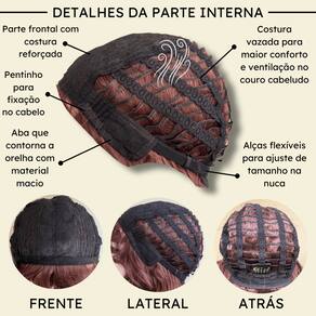 - Tamanho da peruca M (padrão) com alças internas ajustáveis.