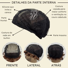- Fibra kanekalon pet; - 5cm de comprimento dos fios; - Modelo Wig com topo em panol; - Temperatura máxima aceita 130º ; - Tamanho da peruca M (Produto flexível); - 100 gramas em média;