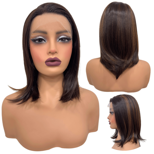 - Fibra 100% orgânica futura; - 30cm de comprimento; - Aceita chapinha até 200º; - Front Lace 13x1 com tela HD; - Possui três pentes internos para maior fixação; - Peso do produto 165gm em média; - Tamanho da peruca M (padrão) com alças internas ajustáveis. Marca: LIONSWIG