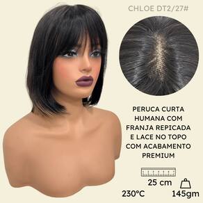 Peruca humana curta bob franja 25cm com lace no topo natural - Cor: Ombre Hair DT2/27