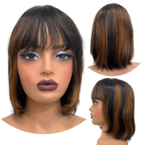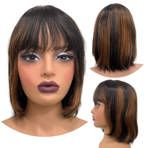 Peruca humana curta bob franja 25cm preta mecha loira F2/30 - Peruca de cabelo humano curta com franja