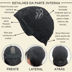 - Tamanho da peruca M (padrão) com alças internas ajustáveis.