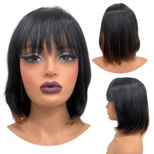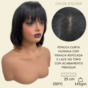 - Cabelo 100% humano tingido processado; - Modelo tradicional wig; - 25cm de comprimento; - Com lace no topo da cabeça para um melhor acabamento; - Possui três pentes internos para maior fixação; - Peso do produto 145gm em média; - Tamanho da peruca M (padrão) com alças internas ajustáveis. Marca: Não Informado