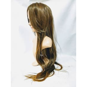 Cor: Castanho com luzes Californiana Tamanho: 80cm Peso: 300 gramas Material: Fibra Futura Modelo: Lisa Repartição: Fixa Ajuste na Nuca: Sim Temperatura: Ate 180ºC Imitação do Couro Cabeludo: Sim