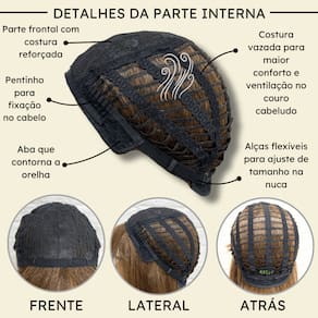 - Fibra orgânica premium; - 45cm de comprimento; - Aceita chapinha até 200ºC; - Peso 180g em média; - Possui três pentes internos para maior fixação; - Tamanho único com alças internas ajustáveis;- Touca interna vazada (Maior respiração no couro cabeludo). Marca: Não Informado
