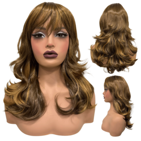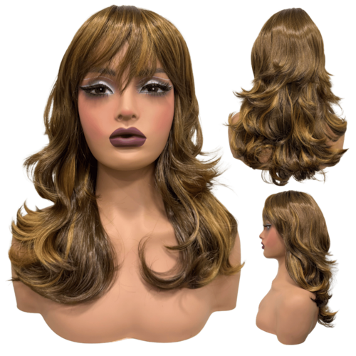 Peruca lisa super repicada com franja 40cm loiro com mechas