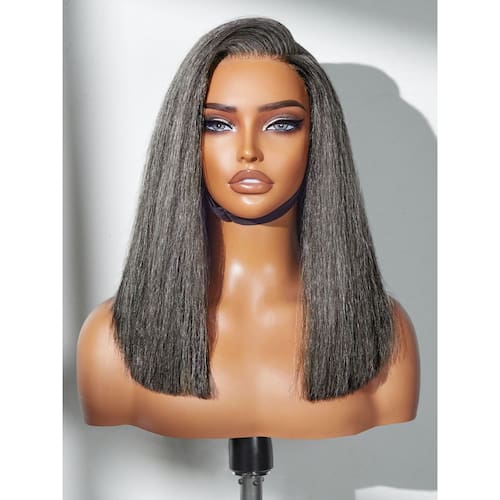 LUVME HAIR 14'' Grey Salt & Pepper Bob Wig Blunt Cut Bob Wig Pre Cut Glueless Wigs Glueless Lace Front 14 Inches Bob, Pre Cut Plucked Hd Lace Short Wig Ready To Go Natural Color Straight Side Part