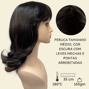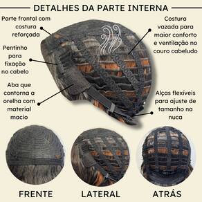 - Tamanho da peruca M (padrão) com alças internas ajustáveis.