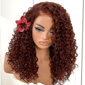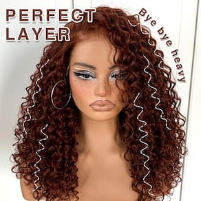 MITIMES Peruca cacheada marrom avermelhada HD Lace Wear And Go Peruca sem cola pré-arrancada peruca frontal de renda sintética 33 x 15 crespo cacheado com camada de 45 cm